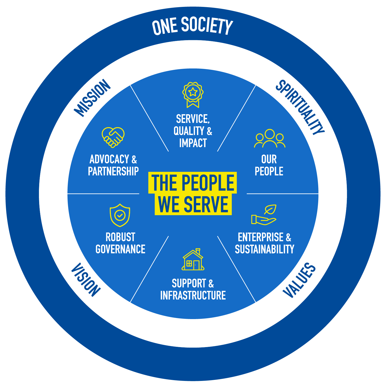 The strategy firmly places the people we serve at the centre of the work we do. We seek to fulfil our strategic objectives by functioning as One Society and align all our activities in a manner consistent with the Society’s Mission, Vision, values and spirituality.